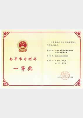 南平市专利一等奖证书