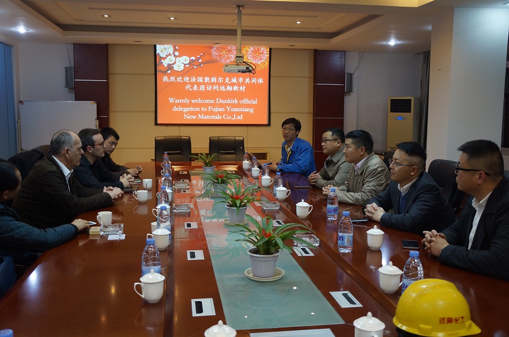 2017年3月21日,法国敦刻尔克城市共同体代表团JALABERT Alain先生和Julien DUJARDIN先生一行莅临威廉希尔中文网站参观考察,董事长王承辉先生携同公司全体工作人员热情接待了法国友人一行。随后,陪同参观了生产车间扩建项目建设情况,并召开了访谈会议,邵武市副市长林新长、商务局局长危宜斌等相关部门领导出席会议。