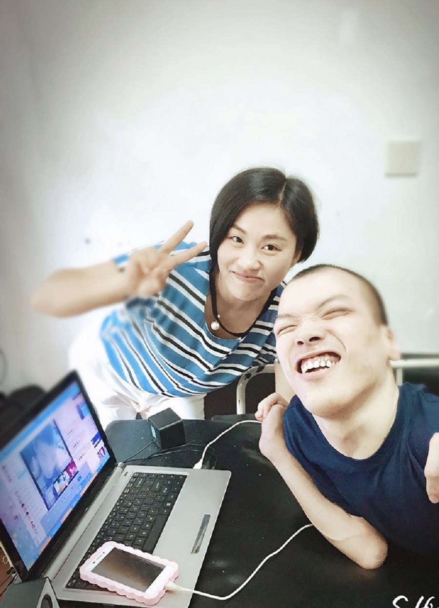 捐款结束姚经理快步走向孤儿生活区,她向孩子们招手问好,祝他们节日快乐,据孤儿院负责人介绍,孤儿院现有十多名孤残儿童,他们因患有脑瘫,先天性心脏病,唐氏综合症等疾病而被家人遗弃,孩子们的生活基本都无法自理,主要靠保育员照顾。缺少关爱的孩子们看到我们朝我们挥手微笑,这时动听的歌声从一个房间传出,朝这个房间走去,一个全身畸形到扭曲的孩子在对着电脑现场唱歌直播,而且唱的特别动听,经过同意跟这个孩子合影留念,并给他鼓励,希望他生活会越来越好。随后来到孩子们的教室,孩子们的教室布置的仿佛童话世界般,姚经理蹲下来陪孩子们一起做游戏,跟她们讲故事,祝他们节日快乐。