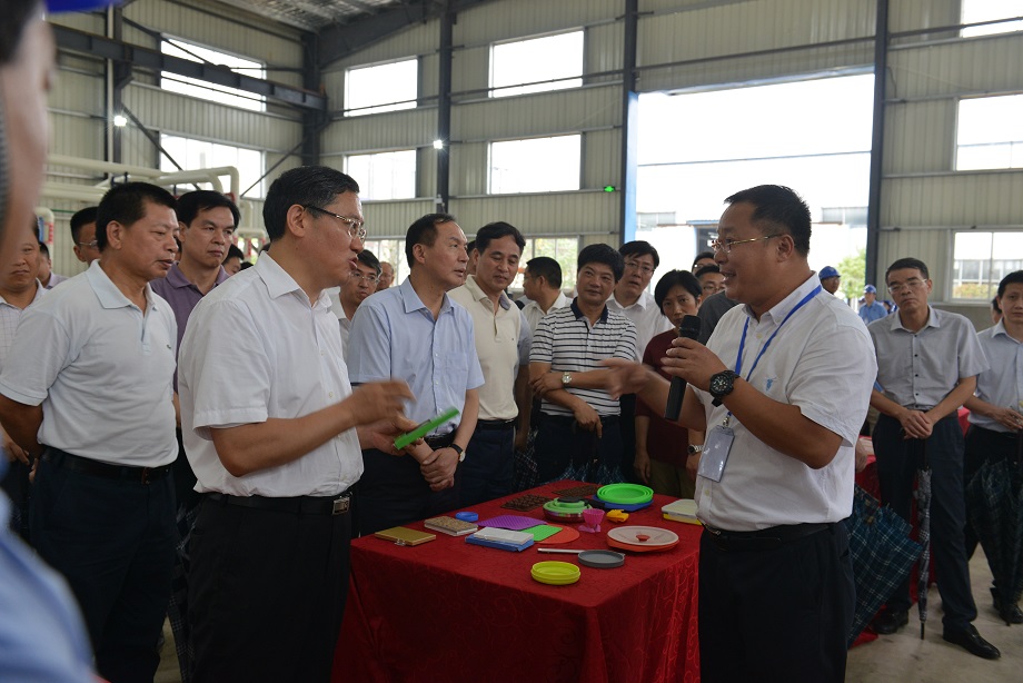 随着董事长的引领,市委市政府领导们来到了刚竣工的溶解车间,向领导们展示了公司先进的设备,及高性能白炭黑产品。董事长王承辉介绍了公司发展历程,产品市场占有率,所处行业龙头地位,接下来又对技改项目新厂建立做了介绍,福建威廉希尔中文网站新材高性能白炭黑及产业提升技改项目系省工业重点技改项目,总投资1亿元,占地面积156亩,对现有2条白炭黑生产线设备及厂房进行升级改造,提高生产效率,释放产能,分两期建成年产4万吨高性能白炭黑生产规模。公司计划今年引进中介正式启动IPO程序,力争2018年底在主板上市。目前已完成干燥、浓浆槽及袋滤、反应压滤、溶解四座厂房建设,设备正在采购,预计2017年9月建成投产,全面达产后年可新增产值4亿元、税收3000万元。